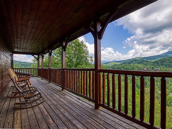 A majestic mountain retreat in the heart of Gatlinburg, this stunning 5-bedroom, 5-bathroom log cabin offers over 3,300 sq ft of luxurious living space in the desirable Gatlinburg Falls resort. Perched just minutes from downtown and the Great Smoky Mountains National Park, this property boasts breathtaking views of Mt. LeConte and the Smokies from its three-level rear decks. Step inside to find a spacious living and dining area complemented by a full kitchen. The large primary suite features an en-suite bath and walk-in closet, while three additional bedrooms on the second level, each offer private baths and closets. An open den area on this floor provides extra living space. The lower level houses a recreation room, theater/media room, and a fifth bedroom suite, ensuring ample space for relaxation and entertainment. This cabin isn't just a personal retreat; it's a proven income generator. As part of a thriving resort community, residents enjoy access to a private pool and the convenience of a nearby city trolley stop. Experience the perfect blend of luxury, nature, and investment potential in this Smoky Mountain gem. Schedule your viewing today and embrace the mountain lifestyle you've been dreaming of!