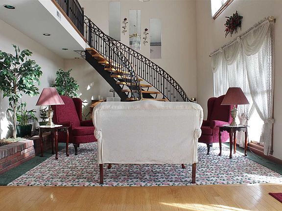 Built in 1990, this home has unique features that are sure to pique your interest. With a simple drive through Ridgeline Estates, your eyes will be drawn to this brick/vinyl 2 story home with a beautiful front porch adorned with wrought iron railings. Entering the home, you will be greeted with a large foyer and formal living room with a grand, curved staircase leading to the second level. The kitchen features oak cabinetry, exposed brick, hardwood flooring and a wrought iron spiral staircase giving you a second access to the upper level. The kitchen offers a center island and breakfast nook with sliding patio doors leading to the lush backyard. Adjacent to the kitchen is a formal dining room with bay window that offers a comfortable space for holiday dinners. A sunken living room offers a woodburning fireplace for those relaxing evenings. The main level also offers a spacious utility and laundry room complete with a washtub. This space also doubles as an office with a built-in desk, cabinets and shelving. An additional large recreational room, or man cave as the owners call it, offers a wet bar and a great space for hanging out while watching the Cardinals game. The enormous master suite offers a large walk-in closet and private bath. Additionally, the upper level features two additional bedrooms and a full bath. The wrought iron railing on the second level provides gorgeous views down into the formal living room and foyer area where natural light illuminates the first and second levels. The backyard offers a patio, great for grilling. Enjoy entertaining guests with the many pool parties you are sure to have at this home. The large pool has a fully enclosed deck that surrounds it, providing a place to lounge in the sun. This unique home is situated on a double lot and offers 2808 sq. ft. of living area that is sure to impress. Don't miss out.