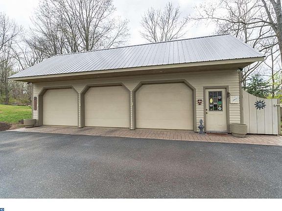 This unique, custom stone cape is located on a quiet road in the much desired Franconia Twp. Named one of the top safest towns in PA! This 3BR home is ever so nicely situated on a level lot with loads of curb appeal and professional landscaping. The long circle driveway offers plenty of parking and easy in and out. Three and a half car detached, heated garage features an abundance of storage and work space for that handyman, contractor or car collector. Storage Shed for lawn equipment to the right of garage. Oversized paver patio overlooks the exquisite grounds. Inside boasts a beautiful custom solarium, which leads to the functional kitchen and dining room (currently used as a living room). Large, open foyer upon entry of front door opens up into a huge family room with gorgeous stone fireplace wall, built in bar, newer upgraded carpet and windows galore displaying the scenic views. Full bedroom and full bath finish off the main level. Custom staircase leads you to the upper level featuring a large master bedroom with built in cabinetry, walk in closet, two additional closets, full master bath and a lovely deck which overlooks the gorgeous property and displays views of the sun setting. A good sized second bedroom with skylights and attached full bathroom finishes off the upper level. The unfinished walk out basement allows for additional storage and also includes the laundry area. This home offers loads of square footage and is awaiting your touches. Close to parks, shopping, dining and major Routes 113, 63 & 309. Newer roof with a 40 year shingle, Central Vac, New roof on garage and shed, Pella casement windows, top of the line heater and public sewer. Schedule a tour today!