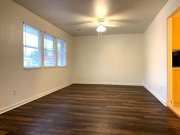Wonderful 2 bedroom, 2 bathroom apartment in three-plex. Fresh paint with luxury vinyl plank flooring. Lots of kitchen cabinets & drawers. Full-size refrigerator, gas range, microwave and dishwasher. Laundry room with washer/dryer hookups. Large closets. Shower/tub combo. French doors lead to large back yard with mature trees. All utilities and lawn care included in rent! SF is approximate.
