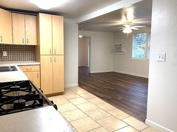 Wonderful 2 bedroom, 1 bathroom apartment in three-plex. Fresh paint with luxury vinyl plank flooring. Lots of kitchen cabinets & drawers. Full-size refrigerator, gas range and dishwasher. Large closets. Shower/tub combo. French doors lead to large back yard with mature trees. All utilities and lawn care included in rent! SF is approximate.
