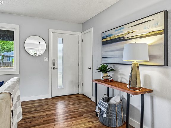 Freshly remodeled single-level home with a huge fenced back yard & play structure! This light, bright home has a BRAND NEW kitchen—all new cabinets, counters and appliances. Refinished hardwoods throughout, all new paint inside and out, a cute and functional laundry room/mud room, ALL new windows, new interior and exterior doors and moulding, french doors leading to the back patio, and more! [Home Energy Score = 6. HES Report at https://rpt.greenbuildingregistry.com/hes/OR10229420]