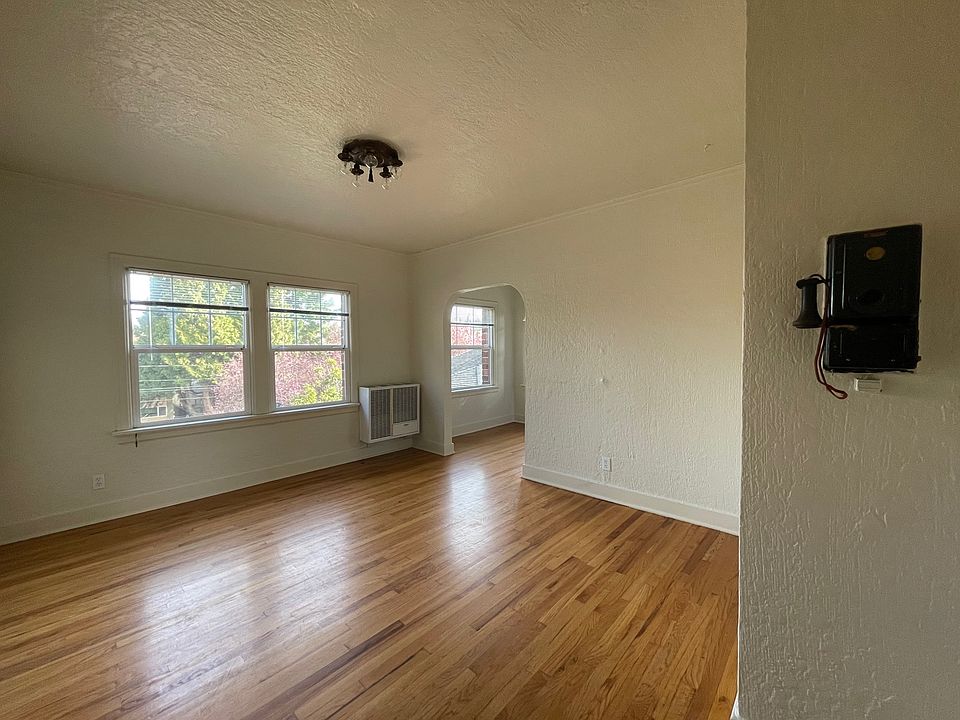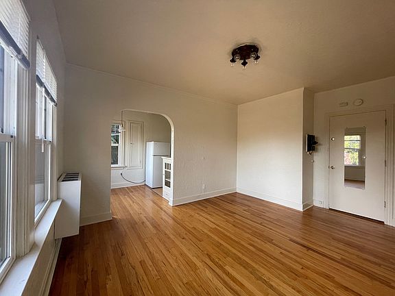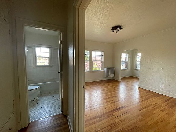 Lovely top floor corner studio in Sunnyside/Belmont neighborhood, a half block off Belmont st, a stone's throw from Bare Bones cafe and Blutos. It has hardwood floors throughout, plus vintage fixtures and original cabinetry in the kitchen and closet. There are five north and east facing insulated windows offering a view of the surrounding neighborhood. There is one large walk-thru closet with a built-in wardrobe cabinet. The kitchen is small with standard updated appliances + and dining area at the corner. The bathroom has a tiled shower and pedestal sink, along with original cast iron enamel bathtub and hex tile floor. Rent includes water, sewer and garbage. Renter pays for gas (heat), electricity and internet separately. We do not allow pets, with the exception of one cat per unit. Entire building is non-smoking.