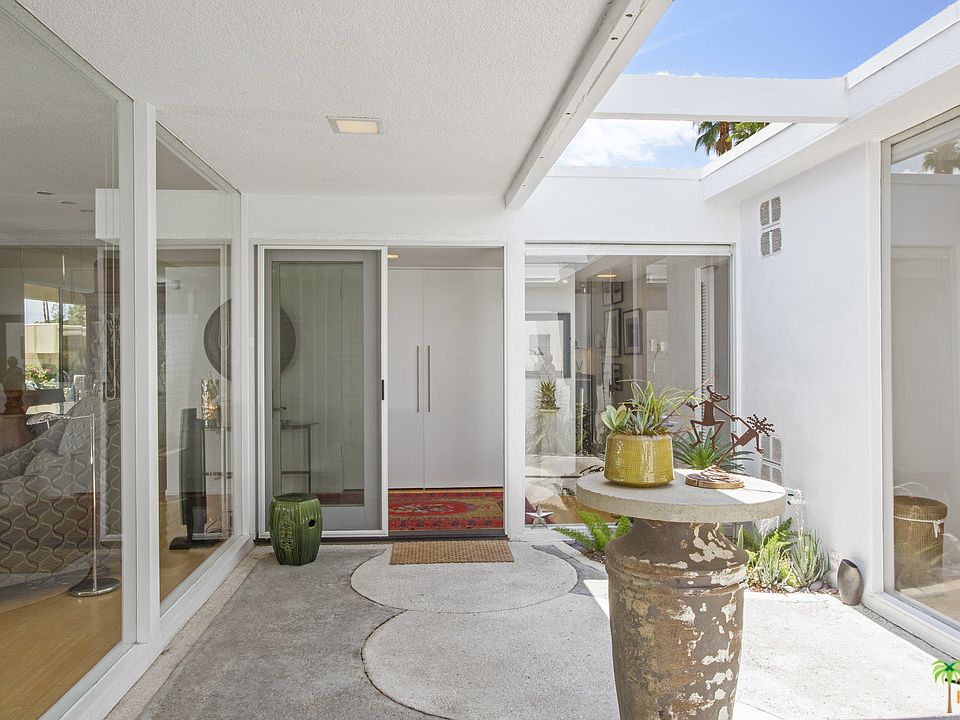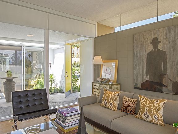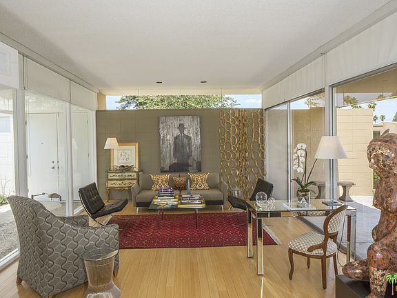 Are you obsessing yet? This Krisel designed property has a historical designation and is one of the finest examples of the mid-century modern movement, with clear lines and organic shapes. If you are a fan of floor to ceiling glass, your master suite has just what you are looking for as you peer through your private atrium, across the great room/dining room to the outdoor pool area and beyond to the panoramic mountain views off of your poolside patio. This beautiful property exhibits a spectacular representation of the best that mid-century architecture has to offer!