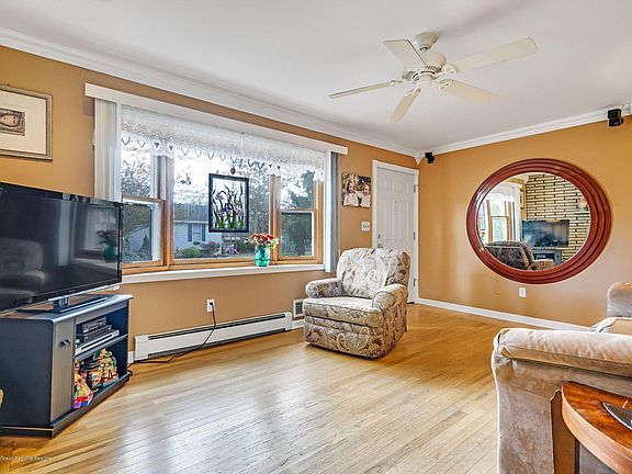 Well maintained ranch features 3 bedrooms,1.5 baths and spacious partial finished basement. Large eat-in kitchen with stainless steel appliances, title back splash, double sink and sliders leading to fenced yard. Open floor plan,neutral colors,central air,hw baseboard heat, hardwood floors throughout family room and bedrooms. Two wood burning fireplaces located in family room and basement. Plenty of storage throughout the home. Well maintain landscaping, irrigation system and electric awning over the large deck. Once you see it you'll want to own it! Call for showing today!