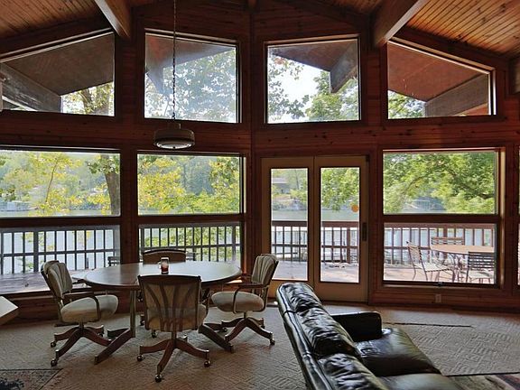 Lakelovers Dream! Unique 3 bedroom, 2 bath Taneycomo lakefront home with private 2-stall dock included! Level lot, gentle walk right down to the water & to your own private dock! 1520 sq. ft., open living, wall of windows for panoramic lakeviews, sauna in master bedroom, elevator, storage, wood burning fireplace, plenty of carport space and much more! Close to Alexander Park, downtown Branson, Branson Landing, shopping & medical services.