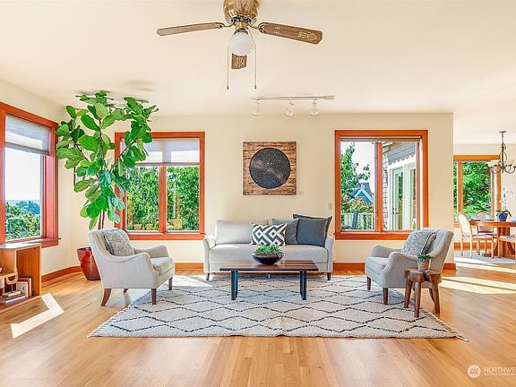 Location, location, location! A perfect spot to enjoy all there is of Port Townsend. Sitting on Morgan Hill, this warm and inviting home takes full advantage of the gorgeous views over the city, Port Townsend Bay, and Mt. Rainier. Wood floors in entry and throughout the living room, dining area and kitchen, together with high ceilings and a wall of windows makes this spot the place to be. There is a wood stove for chilly nights and mini-splits for warm days. Several decks to enjoy outdoor living. 3 bedrooms & 3 baths. Plus, there are two bonus rooms, one downstairs with a 3/4 bath (an extra bedroom or guest area?) and one entered from off the deck; "Zendo Room" a quiet, serene space for meditating or perhaps an art studio? Lots of storage.