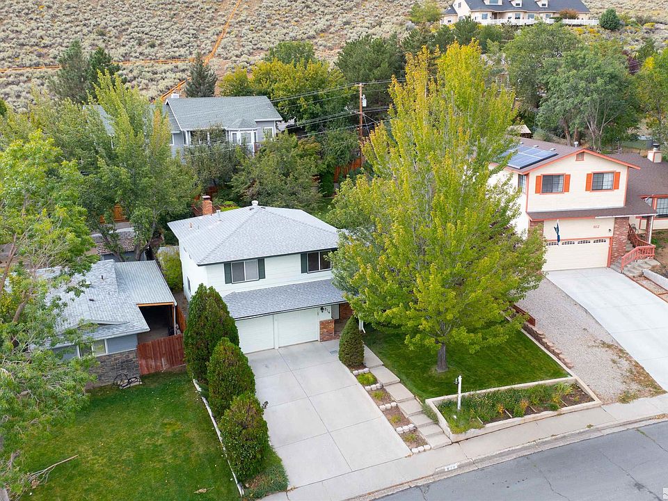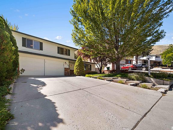 Move in Ready! This 2088 sq/ft, 3 bed/2.5 bath split-level home is nestled in the heart of an established Carson City neighborhood. The property boasts a meticulously maintained backyard oasis with a pergola and concrete patio ideal for outdoor dining/entertaining. Brand new carpet and paint throughout. Easy to show! Contact listing agent for more information., Don't miss the opportunity to make this charming property your own. Whether you're relaxing on the master bedroom balcony or entertaining in the serene backyard, this home offers a lifestyle of comfort and tranquility. Washer, dryer, and fridge included in sale of home. 2 storage sheds in backyard. Gated side yard.