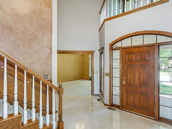 This beautiful custom 1 1/2 story home has one of the best views of the golf course in Terradyne! With 5 bedrooms and 4.5 baths, there is plenty of room for your family. The elegant entry with 2 story ceiling and wood paneled staircase is flanked by a dining room and a living room with French doors. The heart of this home lies in the huge family room with panoramic golf views, paneled wall fireplace & built-ins including with a TV. Great kitchen features granite counter tops, eating space, plenty of cabinet space and stainless steel appliances including a warming drawer & refrigerator. The main level master suite is light and bright and features a door to the deck & a two-way fireplace to the bathroom that features his/her sinks, whirlpool tub, huge walk-in closet and a marble tile shower and tops. The main level is completed by a powder bath & a oversized laundry room with a sink, washer & dryer. The upstairs holds 3 additional bedrooms (one with a private bath and the others with a connecting bath). The spacious fully finished walk-out basement is perfect for entertaining with a wet bar and a third fireplace in the rec room. A full bath, a bedroom, office with built-ins, playroom & 2 storage areas (one with a workbench) complete this space. Enjoy the amazing iron fenced backyard with a in-ground pool with diving board, covered patio with built-in hot tub & 2 decks. Many new Kolbe aluminum clad windows, 3 HVAC units, tons of XL closets & built-in cabinets are just a few of this home's impressive features. Come see this great house and call it home! Don't miss the oversized garage with stairs to the basement, built-in cabinet & workbench.