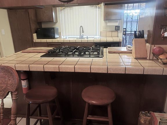 - Kitchen: Garbage Disposal, Dishwasher, Oven - Built-In, Countertop - Tile, Cooktop - Gas, Refrigerator