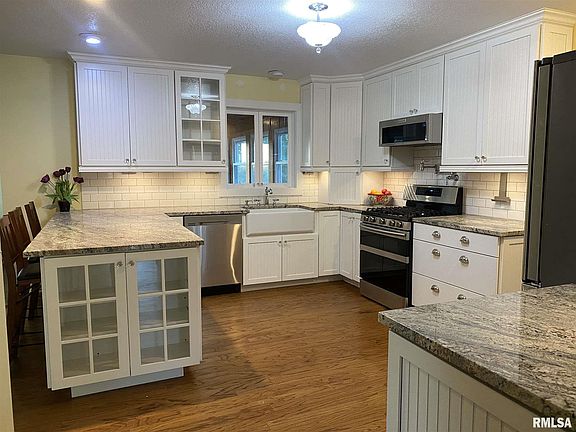 Space is abundant and updates are many in this fabulous 2 story home in the center of North Davenport. 5 Bedrooms, 4 Bathrooms, and 2 cars. A fabulous newly custom remodeled kitchen with under cabinet electric outlets and lighting, a pot filler above the stove, subway tile backsplash, granite counters, white cabinets, and a farm house sink with a window above it that looks into the 4 season room. Family room adjacent to the kitchen and informal dining has a vaulted ceiling and floor to ceiling brick fireplace. Formal Dining and living rooms add plenty of entertaining space. Upstairs houses 4 bedrooms, with 2 bathrooms and hallway laundry closet. There is a charming balcony lookout over the family room. Finished basement with a glass block bar, a full bathroom, and guest room as well as a walk out to the back yard. Shed, grape vines and fencing. Green space beyond the fence adds to the view and privacy and to your enjoyment. Lots of updates listed on additional disclosure