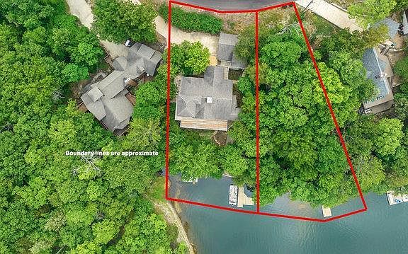 200'+ lake frontage w/ 5500+ sqft multi-generational home w/ Elevator, 3 Master suites, 2 kitchens, 2 laundry rms, Tower Office, 2 decks, 2 docks (33x11 & 14x8), 12x3 fully concreted safe rm, 12x9 boat house & more. New Mini-splits in Garage loft, Boat House, & Tower office. Kitchen features custom built hickory cabinets, island w/ bookcase, built in desk & screened in porch. Living rm has gas fireplace w/ custom stone hearth from floor to ceiling, view of lake & hall 1/2 bath. Dining rm has tray ceilings w/ recessed outlets for lighting. Main floor master suite has view of lake w/ tray ceiling, dual closets w/ organizers. Main Floor Master Bath has large dual vanities, corner jacuzzi & large shower w/ seat. 2 Additional master suites & fireplace on Middle floor, 1 suite has screened in deck. Tower Office has beautiful view of lake, wet bar & cherry cabinets. Lwr Level has large rec rm w/ full kitchen, safe rm & elevator mechanical rm. VIEW OF LAKE FROM EVERY ROOM! Some Accessible Features