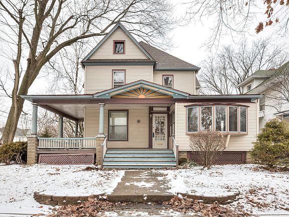 Warm and inviting, step back in time in this beautiful well cared for Victorian home on corner lot. Loaded with beauty and charm! Beautiful hardwood floors, spacious rooms with an abundance of natural light. Updated kitchen is a chef's delight w/newer stainless appliances, plenty of top counter space and cabinetry including a butler's pantry for additional storage. This home also features a wrap around porch, sun room w/outside pergola off back, gas log stove, walk up floored attic with lots of storage. In addition this home is handicapped accessible. w/elevator and large shower. 2 car detached garage, full basement. New roof-complete tear off. Convenient location close to downtown, shopping, dining, bus line, schools, 15 min to U of I, easy interstate access. Don't let your buyer miss this one!! Please notice Huge price reduction from $179000 to $16000. Best buy, lots of home for $!!