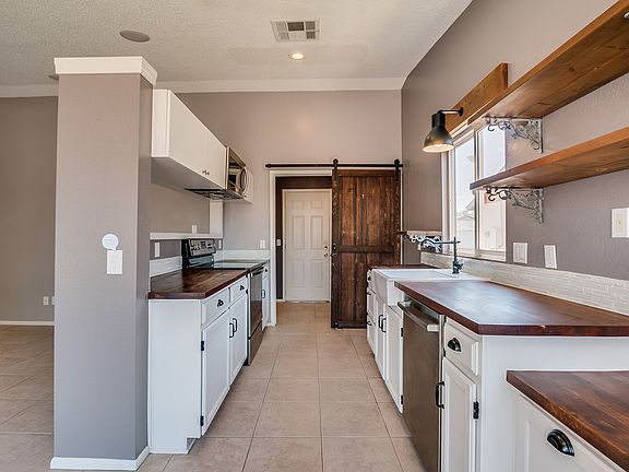 The kitchen of this Chandler home is a must-see, with tile backsplash, butcher block counters, stainless steel appliances, and white cabinets to match! The living room and family room both sport tile flooring, and double doors at the back of the home lead to the covered patio, which extends out to a storage shed. The Master suite enjoys laminate flooring, a walk-in closet, a step-in shower, and an updated vanity. Minutes from Hoopes Park, Planet Fitness, and Fry's Food and Drug. Accessible via 101 and 87. All Opendoor homes come with a 30-day satisfaction guarantee and one-year premium warranty. Terms and conditions apply. Open House: Mon-Sun, 6am-9pm
