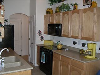 Upgrades galore are featured in this cozy 3 bedroom, 2 bath, 2 car garage home.Aggregate stone driveway and covered back patio are just the beginning of the list even before entering this slightly used non smoking one owner home.Stepping into this cozy delight please note the upgraded ceramic tile sitting below the vaulted ceiling that brings notice to the upgraded light fixtures and ceiling fans. When entering the kitchen the granico countertops highlight the maple cabinets and all kitchen appliances convey.The granico is in all baths and laundry area as well.The garage has wonderful built-ins.Back yard runs up against a seasonal wash and has a delightful decorative waterfall.Home is landscaped & on a drip system and also has a gas stub on the back patio for your summer bar-b-ques.
