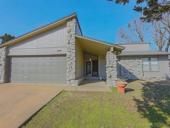 Clean home with cosmetic updates to counter tops, appliances, tub/showers, interior exterior paint, flooring and fixtures. Bedrooms are of good size, all with walk-in closets. Fully fenced yard with storage shed. Leisure Park elementary is located .4 miles from home and Creek Nation Turnpike is less than 2 miles. Seller is offering the home AS-IS and with a transferrable home warranty.