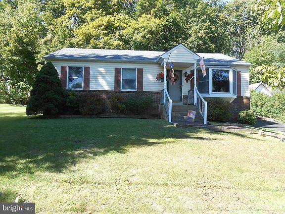 Well kept Rancher on very quiet street. No outlet street. Perfect for children at play.. Brick front, vinyl siding, aluminum maintenance free trim. New roof (2022).HeatPump/Central Air. Rear raised stone patio with retractable awning. Perfect for cooking outside. Private rear yard, backs to wooded area, plenty of nature to be observed. Covered front entry. Side entry to modern kitchen, Granite counters, stainless steel deep sink, wood laminate parquet floor Kitchen opens to Dining room, with large sliding doors leading to the rear outside patio area. Vaulted Living room ceiling with large bay window for plenty of natural morning light. Tiled main hall bath with one piece fiberglass tub enclosure (easy to keep clean). 3 Bedrooms, with full bath with Neo-angle shower in Master bedroom. Full attic storage. Partially finished full 1100 SqFt basement, three quarters of the basement has indoor/outdoor carpet, with Laundry area and separate workshop. Well kept One Owner property, built in 1990. Very close to local shopping, yet tucked away from the friendly busy community. Owner Is A Licensed Pa. Realtor