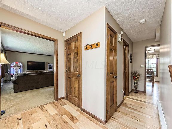 Incredible custom built 2-story 5 bedroom, 2.5 bathroom home on scenic acre near Hoover Reservoir in Big Walnut Schools! Brick & Shaker shingle vinyl siding & Pella windows. Solid wood 6 panel doors w/ custom crown molding. Updated kitchen in 2016 has Amish wood cabinets, granite counter tops, Stainless Steel Appliances & newer floors. Master suite w/ walk-in closet, updated bath w/ walk-in shower. All baths updated w/ custom tile work! First floor laundry. Wonderful 3 season room overlooking mature trees, gardens & paver/concrete patio. Large 2 car garage & 2 story 16'x 32' pole barn w/ electric and shed! Newly black-top paved turn-around off driveway w extra pad for parking a 50 ft. trailer / boat / motorhome. New roof (2013), siding 2007. Delco water for home & newer well for watering