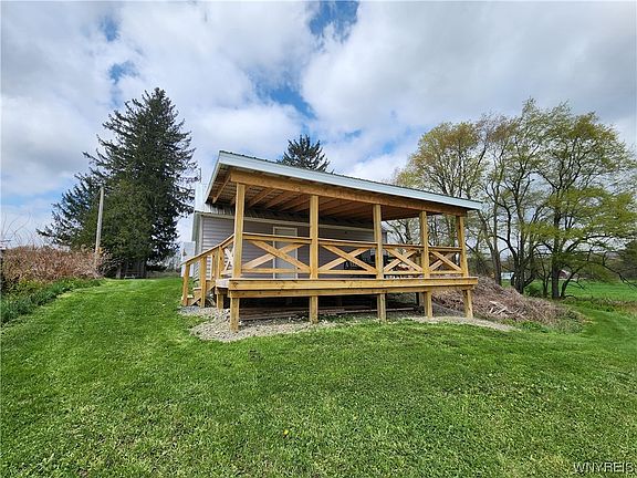 These 3 beds, 1 bath, Picturesque rural homestead, is situated on 4 acres, within 5 miles of Rushford Lake. This home has been cleaned out, and updated with a new furnace, new hot water tank, new plumbing, new gorgeous bathroom with walk-in shower, new bedroom drywall and flooring along with a custom-built deck to overlook that gorgeous view! She needs someone to come in and just put the finishing touches on!