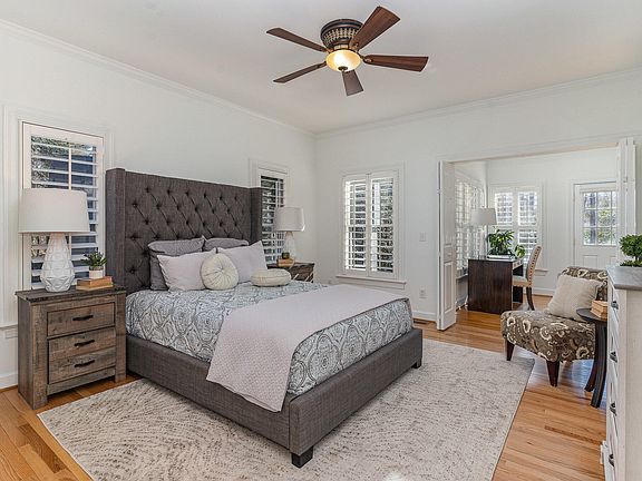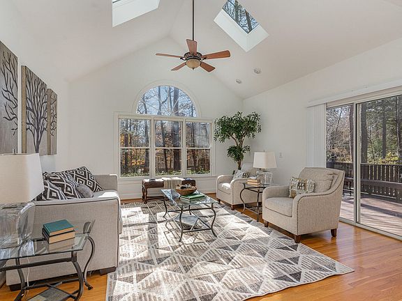Rare opportunity! A RANCH in highly desirable Governors Club, a gated community with a 27-hole Jack Nicklaus golf course. Efficient floor plan allows you to enjoy one level living with just the right amount of space! Level lot in a neighborhood that is perfect for walking/biking.This lovely property is situated on a cul-de-sac with a private wooded backyard in Morehead Forest. The house is filled with sunshine. Vaulted ceilings and an open floor plan enhance the space allowing it to live large. The plantation shutters, and hardwood floors throughout (except bathrooms) make the house cozy and so easy to live in. A NEW ROOF plus, interior and exterior are freshly painted, so this house is ready for you. Close to UNC, RTP, airport, Duke and great medical.