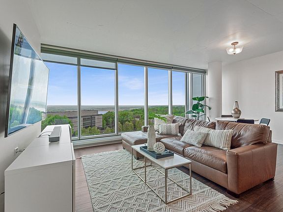 Stunning 10th-floor condo in the prestigious Reflections Condominium with panoramic water views out the floor-to-ceiling windows! Enjoy picturesque sunrises and sunsets while fresh paint combines with hardwood-style floors to welcome you into the open floorplan. Cooking is made simple in the kitchen with stainless steel appliances, granite countertops and a breakfast bar. An abundance of natural light shines throughout the home and views of Long Meadow Lake, wetlands and Minnesota River will endlessly impress you. From the bedroom, you'll enjoy the same views! Your bath features a new granite sink and for convenience, theres a storage locker and one designated parking spot for your unit. Shared amenities include a workout facility, a residents lounge with a well-equipped kitchen, game room, and two BBQ cookers on the downstairs patio. Ideally located near highways, the airport, and the light rail for easy travel, theres so much this scenic condo has!
