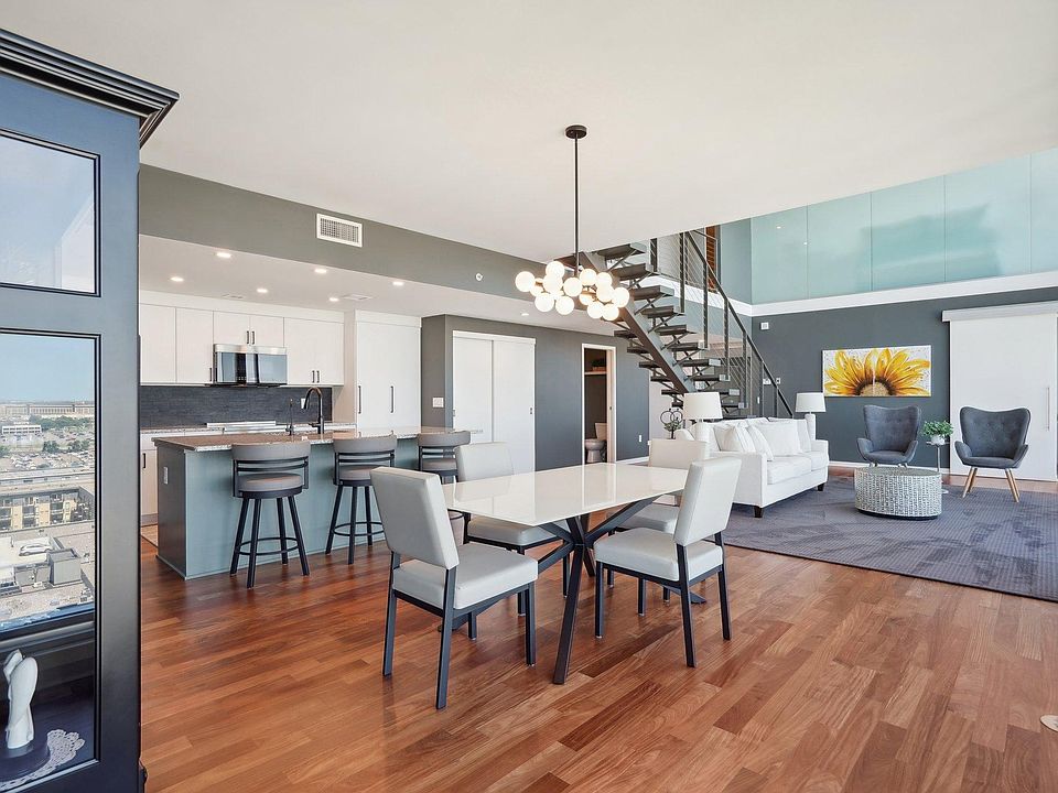 Experience unparalleled luxury in this recently renovated two-story penthouse, featuring floor-to-ceiling windows that offer breathtaking panoramic views. The main level features refinished mahogany floors, a modern kitchen with new high-end stainless steel appliances, updated lighting, and fresh paint throughout. The open layout is perfect for both relaxing and entertaining, offering great views from every angle. On the upper level, you'll find two spacious bedrooms, each with its own full bathroom and plenty of closet space. Additional updates include new wool carpet and a new washer and dryer. This unit comes with two side-by-side heated parking spaces and a sizable walk-in storage unit. Conveniently located near the light rail, airport, Mall of America, and the Minnesota Wildlife Refuge with its extensive trail system, this penthouse offers a comfortable blend of luxury and convenience. Don’t miss the chance to make this exceptional space your new home.