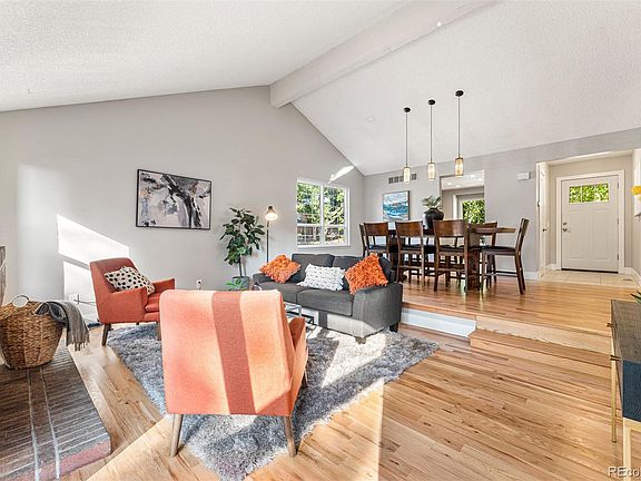 Welcome to Meadowglen! Located on a corner lot of a cul-de-sac, Dry Creek Trail and Pomona Lake #2 are seconds from your front door. Inside, this multi-level home has been fully updated, from the oak hardwood floors to your chef's kitchen with stainless appliances, quartz countertops, and soft-close cabinets with pull-out drawers. As you enter, take in the amazing natural light brighting the home with vaulted ceilings. Cozy up to the wood-burning fireplace and enjoy the open main floor dining area. Upstairs you will enjoy the privacy of the spacious primary with an ensuite bathroom. The generous backyard has a composite deck with cedar pergola providing ample entertainment space. Join the Meadowglen community with access to a clubhouse, pool, and tennis courts.