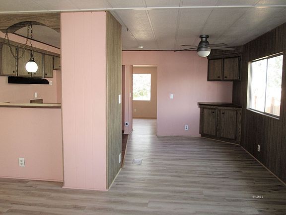 Affordable mobile home with 2-3 bedrooms, 8X20 sea-train work shop w/ electric, fresh paint and flooring. Open the cedar fenced gate and enter your own little word. Off the covered front porch, Walk into the good sized living room with wood stove, open to the kitchen and dining room. Down the hall you will find 2 bedrooms and a large bathroom w/new toilet, sink & faucet & the laundry hookups. Off the kitchen is a huge addition room with a walk-in closet, large picture windows and a back door to the cedar fenced backyard. Make this a 3rd bedroom, craft room or whatever your needs. Its bright and spacious. All this is surrounded by a beautiful cedar privacy Fence. 2 driveways to park cars, boat, RV lots of parking. New Septic leach lines in 2020. New Water heater in 2021. Please make an appt to see, don't just go alone and wander around.