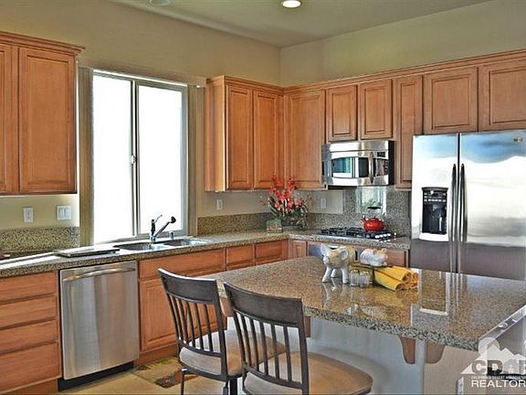 Fantastic REDUCED price for a popular SERRENTE (1488 SQ. FT.) Shows Great and could be turnkey. This open floor plan features a kitchen with large center island,refrigerator, and pantry, a dining area and great room. Master suite is really spacious with double vanity bath and walk-in closet. There is a den/office, inside laundry room with plenty of cabinets and deep sink and washer and dryer. The second bedroom and bath on separate side of house. The low maintenace backyard has a nice covered patio, mature trees, shrubs and artificial turf that looks so real but no mowing! Price to sell! Furniture available outside escrow.