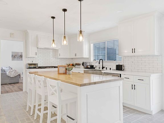. Spacious beauty - 3 beds w/possible 4th bed /den / office! Remodeled, light and bright turnkey. Cook, dine and entertain in style. Massive Chef's kitchen with beautiful white cabinetry features custom butcher block island with breakfast counter. More storage than you can dream of with convenient pull-out drawers. Open concept kitchen flows to family room, with custom designed built-in entertainment center. Enjoy warm and inviting fireplace in living room. Large formal dining room with beautiful, expansive built-in cabinetry opens to private rear patio. En-suite master bedroom opens to dressing area, with walk-in closet. Presidential Murphy bed in secondary bedroom that was used as office. Crown moldings. Custom brick flooring offers low maintenance. Carpeted bedrooms. Energy efficient dual paned windows. Private front and rear patios. Freshly painted exterior. If you're looking for space, beauty, privacy, functionality, look no more.
