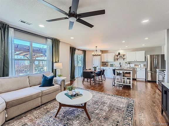 Welcome to your dream home with low-maintenance living in the highly sought-after Cherry Creek school district! This impeccably remodeled 3-bedroom, 2.5-bathroom residence boasts modern upgrades and has been meticulously maintained. As you step inside, you will be greeted by beautiful, refinished hardwood flooring throughout the main floor and will enjoy the open floor plan for everyday living and entertaining. The kitchen is a culinary delight, showcasing white cabinets, stainless steel appliances, and a convenient removable island offering additional bar seating. The main floor also has an updated half bathroom, ensuring convenience for both residents and guests, as well as a dedicated laundry room. Upstairs, discover generously sized bedrooms with the primary suite featuring double closets and a tastefully remodeled en suite bathroom. Two additional bedrooms are located upstairs as well as an additional remodeled full bathroom. Updated lighting fixtures throughout the home add a touch of modern flair. The upper level features brand new carpeting and the entire house has been freshly painted in a neutral palette. Step outside to your private oasis, where a large deck adorned with a custom pergola and ambient lighting creates the perfect setting for entertaining or enjoying quiet evenings. The well-maintained grass area, Rachio smart sprinkler system, and thoughtfully designed flower beds complete the outdoor space, all enclosed within a fully fenced yard for privacy and security. Attached 2 car garage is great for cars, toys, and storage! You will enjoy the HOA covering the exterior maintenance on the home, and the roof has been scheduled to be replaced by the HOA! Located in proximity to restaurants, shopping, with easy access to E-470. Smart home including the Ecobee smart thermostat, Ring alarm system, smart garage door opener, Rachio sprinkler system are all included! Don't miss the opportunity to make this beautifully updated residence your new home!