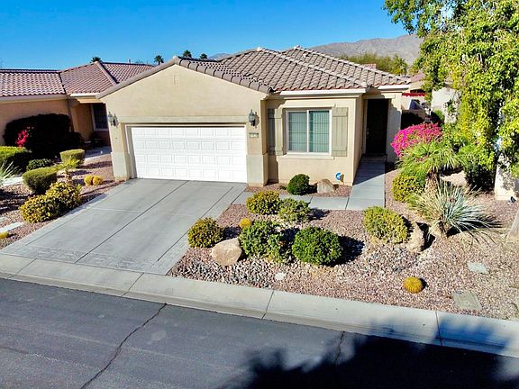 This meticulously cared for home is priced to sell quick. The original owners loved living here and it's easy to see why. The ''marvelous Montoya'' plan boasts an open concept kitchen and great room (with a beautiful mountain view!) and a nice separation of the bedrooms. The large kitchen features slab granite countertops with 42inch high quality cabinets, stainless steel appliances, and a stool height breakfast bar making it great for entertaining. The spacious and private master suite looks out to the lovely desert landscaped backyard and features a large walk-in shower, dual vanities, and a great walk-in closet. The second bedroom is adjacent to a full bath, as well as a separate office/den (with upgraded wood look tile) that can easily be used as a 3rd sleeping area for additional guests. Inside laundry room has a deep sink with ample cabinets. The icing on the cake is the good sized backyard with lots of tranquility and privacy. A large extended covered patio looks out to beautiful desert landscaping with a gorgeous mountain view. New A/C in 2018 and water heater in 2020 are additional features that make this such a great buy. Sun City Shadow Hills is known for low HOA fees and unparalleled recreation and amenities. This well maintained home ensures absolute CONTENT on AVENIDA CONTENTO... priced to sell quickly so take a look today!!