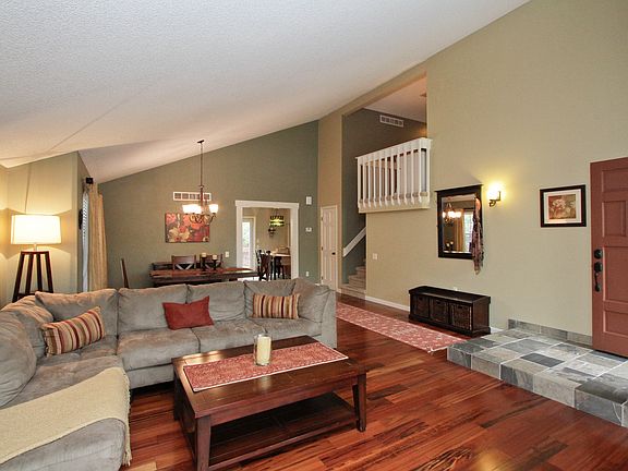 Beautiful tri-level home near Pomona Lake with remodeled main level in a quiet cul-de-sac! Custom slate entryway into living room with hardwood floors, vaulted ceilings and custom interior paint. The stunning kitchen features pendant lighting, stainless steel appliances, quartz countertops with custom tile backsplash, tall cabinets, a gas range and custom built-in bench seating. Family room with slate stone wood burning fireplace and custom built-in shelving. Upstairs find all three bedrooms, two bathrooms, newer carpet and a loft perfect for a small study area! Outside enjoy the wood deck and nicely landscaped backyard that wraps around to the front. Located within close proximity to parks, schools, shopping and a walking trail make this a highly desirable home!