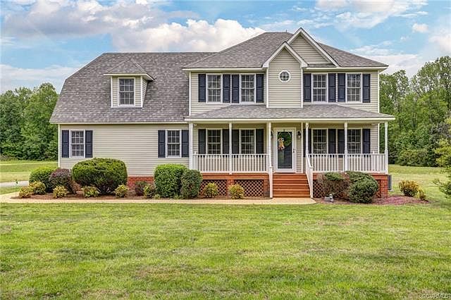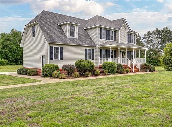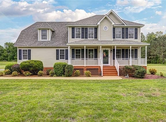 This adorable two-story sits on five acres in heart of Prince George County! This beautiful, private, cleared lot is stunning and the front country porch or back deck give you tons of space to enjoy the seasons! This one-owner home was built in 1999 and is just a short drive from Prince George County Schools. The first floor boasts a large living room with carpet, ceiling fan, gas fireplace and access to the back deck. Also, a formal dining area and kitchen with laminate floors and eat-in kitchen. There is a mudroom, laundry room, and half bathroom right off the garage access door so convenient drop zone for all of your things! The upstairs has a large master bedroom with two large closets, one walk-in, ensuite bathroom with large bath tub. Additional three bedrooms and hall bathroom upstairs. The one-car rear loading garage is great for parking or storage/workshop and also lots of attic storage. This home has been lovingly maintained and ready for its new owners, don't miss your opportunity to own your little slice of Prince George County!