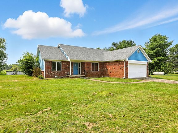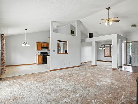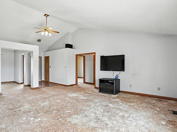 Enjoy wide-open spaces and comfortable living in this charming ranch home. The spacious great room features tall cathedral ceilings and flows seamlessly into the kitchen and breakfast nook. Host gatherings in the formal dining room-or easily convert it into a playroom or office! The floor plan offers two bedrooms and a full bath on one side, with the primary suite on the other, complete with a large walk-in closet and en-suite bath featuring dual sinks, a soaking tub, and separate shower. This home is a blank canvas ready for your personal touch-just add paint and your choice of flooring to make it truly your own. Recent updates include a newer roof, newer garage door, and a furnace replaced last year. Plus, summer fun awaits with the above-ground pool! A storage shed in the backyard adds extra convenience. New roof, paint and gutters in 2021; HVAC 2019. Estate Sale - Home, Pool, deck, outbuildings are Sold As-Is.