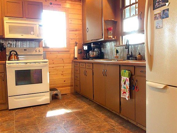 The Country is calling! 3 to 4 Bedroom home situation on just under 2 acres. The home features a new front porch, and a spacious enclosed back porch for enjoying the fresh air and views. The spacious yard has a large area fenced and there are two small barns. The home features fresh paint and an updated kitchen with added breakfast bar open to the dining and living area. Two updated bathrooms featuring all new fixtures and floor, one upstairs and one on the main floor. Special touches such as a cute sliding barn style door, wood paneling and trendy paint colors make this home a real sweet heart! Main floor features a spacious living dining room combo, bedroom, bathroom, main floor laundry, all new laminate and tile flooring. The second floor has three bedrooms, bathroom and a comfortable sitting or study/game area. There are newer windows, new plumbing, electric, water heater, New Air Conditioner, New Gas Forced Air Furnace. Ag Zoning