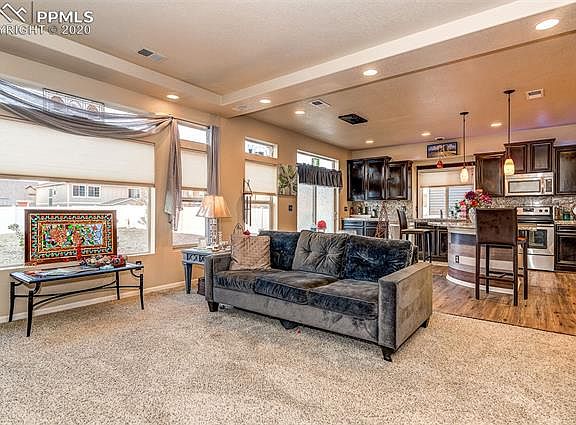 Contemporary two story home located in the desirable Cumberland Green subdivision by Oakwood homes. This two story home has numerous upgrades and fantastic finishes throughout. The main level offers an open floor plan with a wall of windows on 1st floor. Features include modern LVP flooring, a half bath with a farmhouse sink, a drum shade chandelier in the foyer; family room has with surround sound, recessed lighting and tray ceiling and an LED infinity fireplace. Granite kitchen has 42 espresso custom cabinetry, mood led lighting, a huge granite island for seating or food prep, a huge pantry; Reverse osmosis water filtration, security systems featuring multiple interior and exterior cameras. Walk out to the fully privacy (vinyl - low maintenance) fenced back yard with an extra deep lot that includes a custom concrete patio and fantastic mountain views. The upstairs offers a large open loft that can be easily converted into another bedroom that features artisan windows and offers lots of light. You also have a full bath; two additional spacious bedrooms with hunter ceiling fans; the gorgeous master bedroom suite features a tray ceiling with hunter fan, a generous tiled spa shower w/artisan windows, 9 double vanity with espresso wood cabinetry and crystal led lighting and a 16 walk in closet. The 850 sq ft basement has extra high ceilings just waiting to be finished w two huge sliders offering plenty of natural light. The over sized three car garage is fully insulated. This home has everything you need and wont last long. Schedule your showings this week!