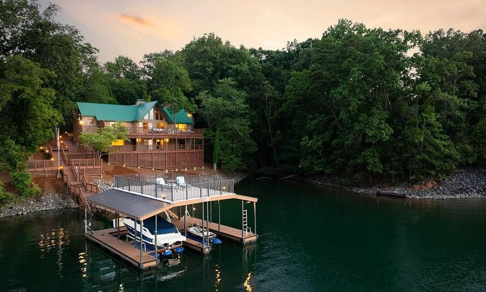 - Exterior features: Lighting, Rear Stairs, Storage, Boat Lift, Covered Dock/2 Slips, Dock, Double Slip, Party Deck