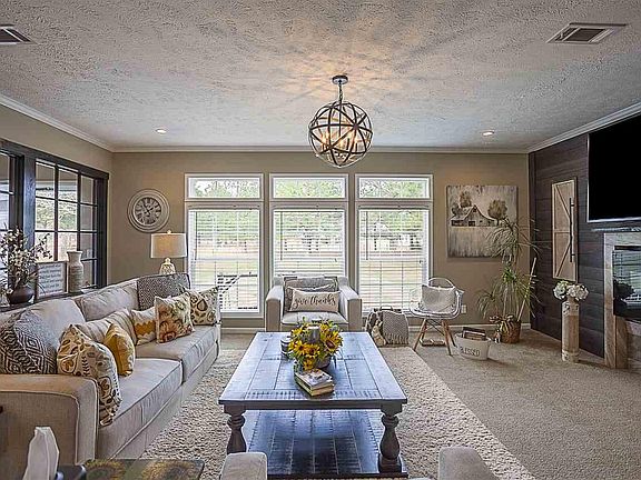 This home is truly a showstopper from the open concept, to the spacious kitchen with recessed lighting. It Has over a 7 foot island, stainless steel appliances, specialty ceilings & a dining room that looks out over the pond. When you enter the glass window foyer that looks into the large living room you can't help but to feel the high end quality of this home. The patio door from the dining room brings you out onto the back deck where you can enjoy the view of the pond. The master bathroom has a free standing soaker tub as well as a large walk in shower with a rain shower head in the ceiling it also has a large walk in closet. The spare bedrooms both have walk in closets. The shop size is 28' X 29' with 2 rollup doors. The 2.65 property is completely fenced in with an electric gate. There is a large pasture in back of the property that is fenced in for livestock. There is also a covered area that is connected to the carport that is fully concreted for your RV.