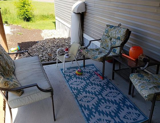 A 3 bedroom 2 bathroom remodeled double wide sitting on an 1 acre of land with a huge 26 x 36 detached garage with upstairs storage. The 2nd bathroom is a master bath. There's a covered back porch patio area with a nice kids area out back. There are 3 blueberry bushes are on the property. The house also has a front porch. It is located in beautiful Woodland in Shiloh, 15 minutes from Clearfield and 45 minutes from State College. A 60 gallon hot water tank was installed 2 years ago. A new metal roof was put on in 2012.