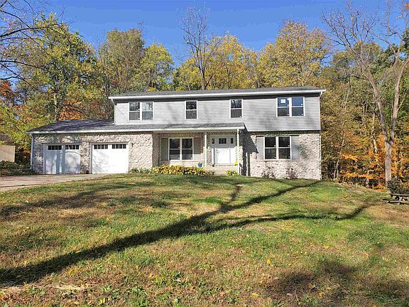 Looking for peaceful, serene property? Look no more! Situated on 4 acres, this home is virtually all new. This home has been completely remodeled inside with new drywall, electrical, plumbing, flooring, bathrooms and so much more. Separate living spaces downstairs with family room open to kitchen. Kitchen with new countertops, appliances, sink, overlooks the wooded backyard. Upstairs utility room. Full basement with tons of cabinets. 2 car attached garage, 2 storage shed.
