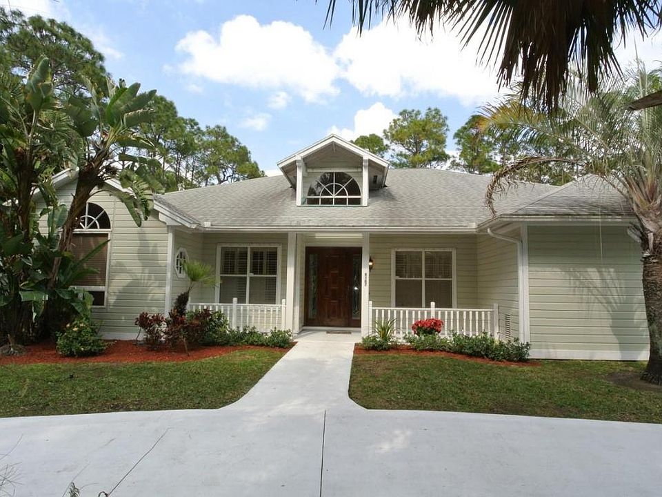 Great home, great location, No HOA, and MOTIVATED seller! This Palm Beach Country Estates home with 2690sf liv -3820sf total - has plenty of space and privacy. This 3br, 2ba, plus built in office, 2CG home is well appointed with fine finishes described in the Supplement. Great 600' screened porch, and a huge concrete 3-way circular driveway large enough for boat, RV, several cars. Enjoy all 1.19 acres with lots of trees on corner lot and both roads paved. Feels like country living but convenient to city amenities. Originally a custom built home in 1993, it has great style and floor plan. Designed for great privacy both inside and out! Room to add pool; perfect for large gatherings, freedom to enjoy your home to the fullest. See Supplement & Docs for details about home and finishes.