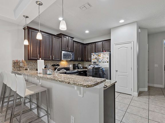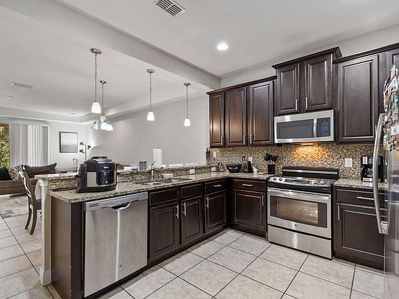 Charming Townhome Minutes from I4 Welcome to your new home! This beautifully appointed 3-bedroom, 2.5-bathroom townhome offers the ultimate blend of comfort, convenience, and location just 10-15 minutes from Walt Disney World and close to all the magic Central Florida has to offer. Located in a gated resort-style community, this vacation house features: Spacious Layout: Open-concept living and dining area with modern furnishings and plenty of natural light. The fully equipped kitchen includes stainless steel appliances, granite countertops, and all the essentials for family meals. Comfortable Bedrooms: A serene master suite with a king bed and private en-suite bathroom, plus two a bedrooms (perfect for kids or guests) and a shared full bathroom upstairs. Private Outdoor Space: Relax patio with outdoor seating ideal for morning coffee or evening wind-downs after the parks. Resort Amenities: Enjoy access to a sparkling community pool, hot tub, clubhouse, fitness center. Prime Location: Just minutes from top attractions like Disney Springs, Universal Studios, and premium outlet malls. You're also close to grocery stores, restaurants, and golf courses.