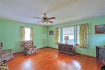 Custom built all brick ranch offering 3 bedrooms, 2 baths, eat-in-kitchen, living room with fireplace, and full basement with bar. Located in the Parkland School District this solid 1278 square foot one-owner home features good room sizes, a classic floor plan, and natural light throughout. A large deck and covered patio overlook the tree-lined lot. Additional details include oil hot air heat, wood-burning stove, central air, public sewer, well, and off-street parking for 6 or more vehicles. The 24x36 Morton pole building with concrete floor and electric is perfect for hobbies, workshop, or garage. Looking for a charming, affordable, well-maintained single home in a country setting? This could be the one!