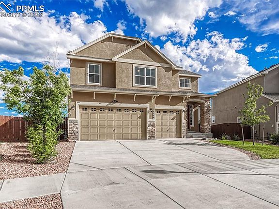Welcome to this stunning 2-story home in the coveted Shiloh Mesa neighborhood. With 5 bedrooms and 4 bathrooms, this spacious residence offers ample space for comfortable living. The 3-car garage ensures plenty of room for vehicles and storage. The large kitchen boasts elegant granite countertops and modern stainless steel appliances. A convenient main level office provides a productive workspace. The newer finished basement adds versatility to the layout. Enjoy breathtaking Pikes Peak views from the expansive covered back deck, perfect for relaxation and entertaining. The nicely landscaped backyard features a charming firepit area, creating a cozy ambiance. Abundant storage throughout ensures your belongings have a place. This property seamlessly combines comfort, functionality, and picturesque views for your dream Colorado lifestyle.