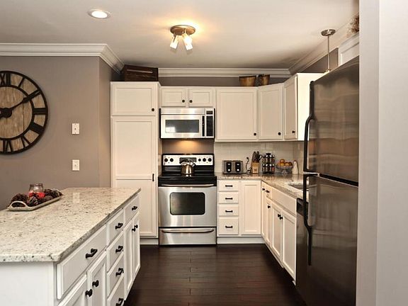 Beautiful End Unit Townhome 2 bedroom, 2 bath, 2 car garage. Main level walkout to deck. Fantastic upgrades include gorgeous granite countertops, subway tile backsplash, SS appliances, main level hardwood flooring, center island, recessed canned lighting, crown molding and fresh paint. Recently finished lower level with walkout to wooded yard area, lower level rough-in available. Relax and live in comfort!