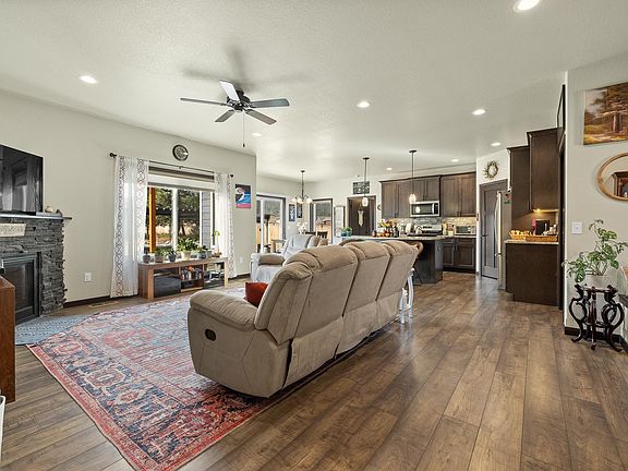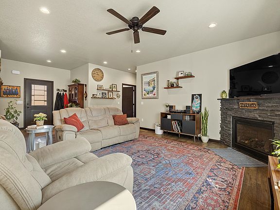 Listed by Jeremy Kahler, KWBH, 605-381-7500. Built new just 2 years ago, this ranch style home sits on a nearly half-acre lot and combines smart upgrades with a desirable layout into a must-see home! *An open concept living area allows for easy entertaining- the comfortable living room centers around a corner gas fireplace, providing style and warmth to this space *LVP flooring, Anderson 100 series windows, 9' ceilings and mocha colored woodwork speak to the quality of this home *The kitchen has Whirlpool stainless steel appliances, granite countertops, a walk-in pantry and ample cabinetry with soft-close features *Convenient breakfast island seating plus a dining area for meals *The private master suite has a spa-like bathroom with a walk in tile shower, soaker tub and a large walk in closet *Convenient laundry room en route to the garage, with utility sink and great storage space *2 additional bedrooms and 1 full bathroom for family or guests *Nestled on a .45-acre lot, the professionally curated yard is a mix of zero-scaping, natural elements, and a cozy firepit *Extend your living space outdoors on either the covered or uncovered patio, perfect for nights with family and friends *Attached 3-car garage is fully finished and heated *Great curb appeal with two tone LP Smartside siding and stacked stone exterior *Tucked at the end of a dead end street, with no neighbors to the east, this home offers tranquility and privacy without sacrificing modern comforts. Call today!