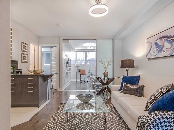 Rarely Offered 1+Den Home In Old Woodbridge Village! This Home Offers An Open Concept Layout With Plenty Of Upgrades. Hardwood Flooring Throughout The Living Areas, Galley Kitchen With S/S Appliances, Tons Of Cabinet Space, Backsplash, Granite Counter With Breakfast Bar. Bedroom Offers Integrated Cabinetry And The Den Can Be Converted Either Into A Bedroom, Gym Or Office. Best Located Unit In The Complex With A Clear Ravine View. 1 Surface Parking Spot Incl.