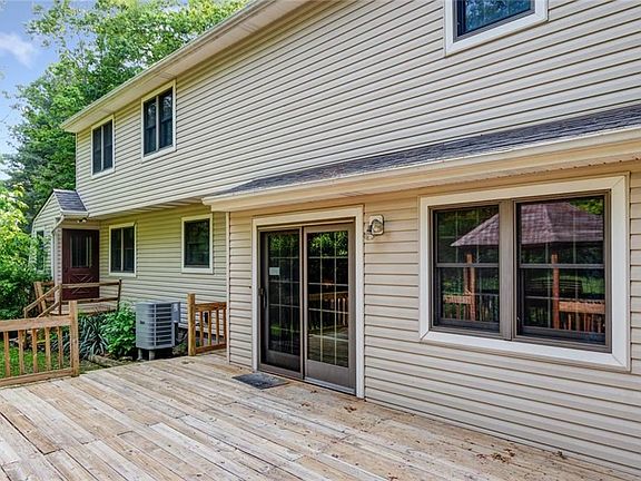 Welcome home to this very well-cared for four bedroom Colonial on over three picturesque acres. This home has it all both inside and out! There is a open floor plan with the spacious eat-in kitchen that flows into the dining room with plenty of space for family enjoyment and entertainment! The formal living room has a beautiful bay window that brings in lots of natural light. Off the kitchen is a half bath and a hallway that leads to the cozy family room. The family room has a wood burning stove. As you walk-thru the new sliding glass doors which lead to a huge 24 x 16 deck that has a gazebo with a swing that overlooks the gorgeous backyard that is perfect for your kids or pets or just for your enjoyment! When you go upstairs you will find the enormous master suite with a on-suite master bathroom. The master suite has a thirteen foot high valuated ceiling, a skylight that makes the space incredibly inviting and three closets. Three generous sized bedrooms also complete the second floor with a updated, full hallway bath. Convenient second floor laundry room that could be a fifth bedroom or office space. Lots of storage. The full basement is partially finished with lots of potential as extra living space. Updates include complete roof tear off in 2019, hot water tank 2017, newer carpet, and freshly painted interior. Paved horseshoe driveway and lots of extra parking space. Gas at the street. Close to freeway, shopping, restaurants. Schedule your private showing today!