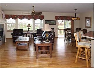 Impeccably maintained ranch on 2d fairway at Heritage Eagle Bend. Hardwood and stained trim and doors create a warm, comfortable ambiance. Upgraded tile floors in the bathrooms. Attractive Corian counters in the kitchen for easy maintenance. Most closets, regular and walk-in have extra built-ins. Finished basement with fireplace. Ownership of this special home includes access to the clubhouse with pools, tennis, updated workout facility and the Eagle's Nest restaurant.